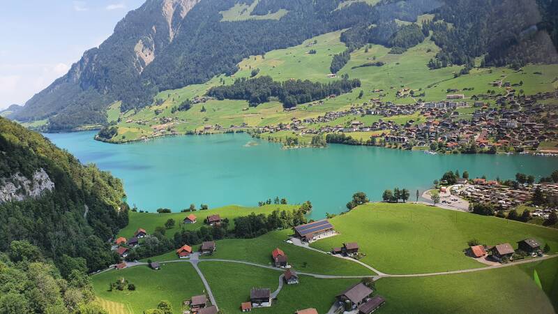 der Lungerer-See ist in zwei Minuten zu fuss erreichbar. mit seiner wundervollen Grünen, manchmal sogar türkis Farbe ist er ein toller Ort, um die Seele baumeln zu lassen. Er lässt sich zu Fuss umgehen und lädt zum Baden oder Angeln ein.